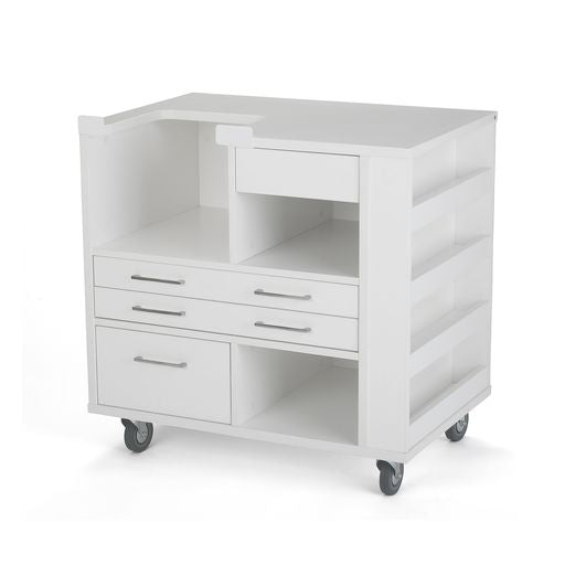 Say goodbye to the clunky, cluttered crafting space of yesterday, and hello to the organized efficiency of the Ava Embroidery Cabinet! Our signature embroidery cabinet from Kangaroo Sewing Furniture features 3 expansive storage drawers, 2 deep cubbies and a dynamic pull-out thread space capable of holding 49 standard embroidery spools – staying organized will never be easier! Ava sits on 4 heavy-duty locking industrial casters, for increased stability and fluid maneuverability through your studio!
