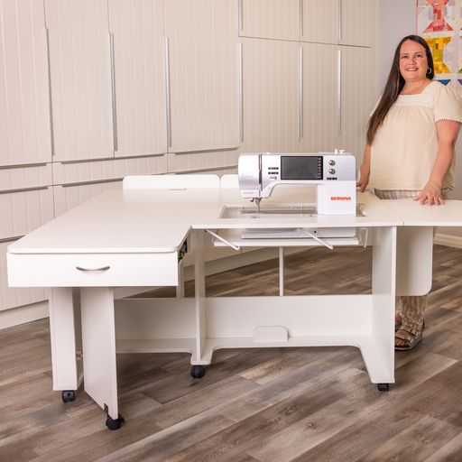 It’s time to sew like the pros! Arrow Sewing collaborated with award-winning quilter, Christa Watson, to design a sewing cabinet that enhances your sewing experience with comfort, convenience, and a massive worksurface! Christa Sewing Cabinet is a full-size workstation featuring a 2-position manual sewing lift, a sprawling worksurface for large quilting projects, and a home-friendly footprint for easy integration into your growing sewing room!