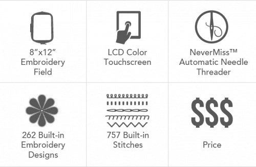 The Baby Lock Aerial sewing and embroidery machine features include: