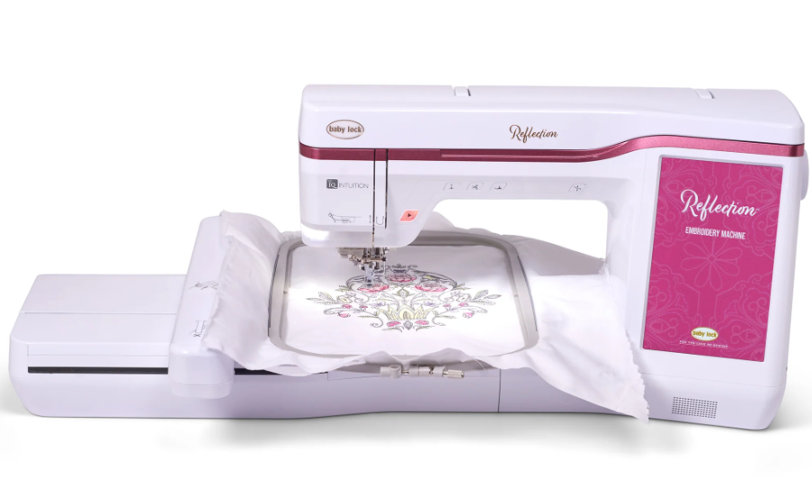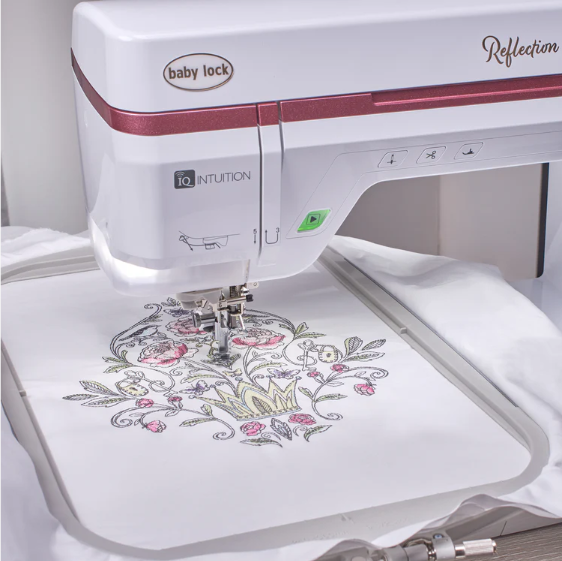 With the IQ Intuition Monitoring App, you can check in on your project from anywhere—perfect for multitasking without missing a beat. And when it's time to stitch, the Reflection's impressive 1,050 stitches per minute embroidery speed lets you complete larger projects beautifully and efficiently. Whether you're crafting heirloom linens, personalized gifts, or professional-grade designs, the Baby Lock Reflection gives you the space, control, and smart features you need to fall in love with embroidery all over again.
