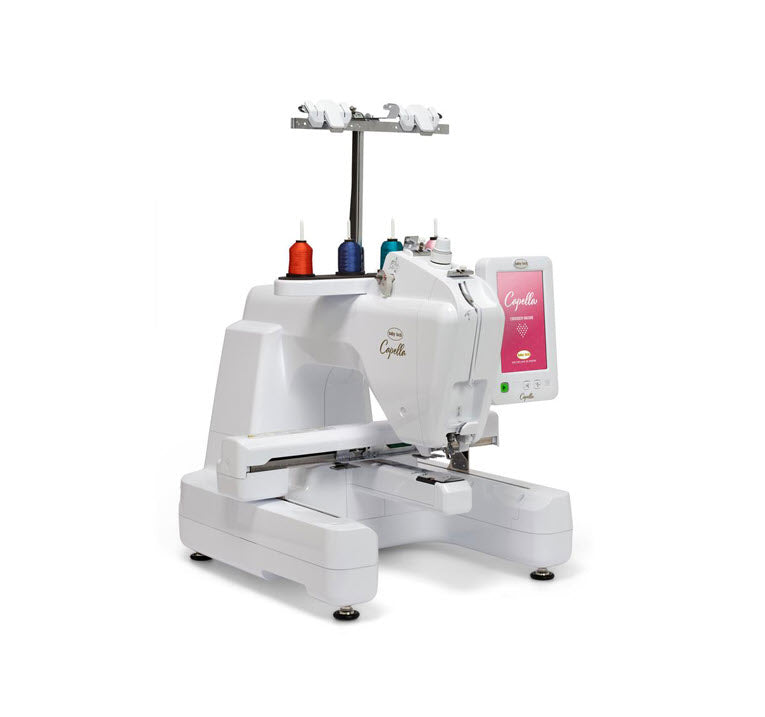 The Baby Lock Capella single-needle, free-arm embroidery machine is ideal for your small embroidery business. Its crosshair positioning laser allows for perfect embroidery design placement, and the free-arm also provides ease and effectiveness when embroidering in tight areas such as inside pockets and sleeves. It can even embroider on stuffed animals, tote bags, and hats!