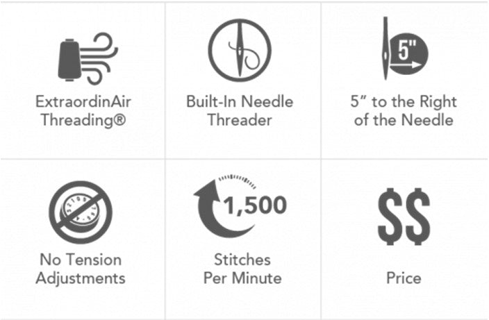 The Baby Lock Euphoria cover stitch machine is the perfect complement to your Baby Lock four thread serger or sewing machine. It creates professional finishes for all your garments, is perfect for active knitwear and even home décor projects. Choose from a triple, wide or narrow cover stitch or chain stitch and easily finish your projects made from even the trickiest fabrics. The Euphoria includes ExtraordinAir® Threading, which threads the chain looper with just the touch of a button. With Automatic Thread Delivery™ you can thread the needles in any order and be ready to stitch with no tension adjustments. Using a cover stitch machine has never been this easy!