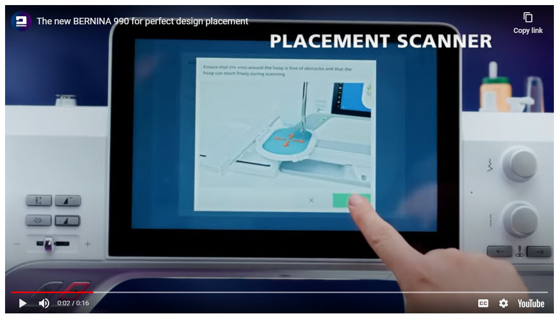 Utilizing the innovative BERNINA Placement Scanner and Camera, you have the ability to scan the embroidery hoop and access the needle area on the screen during sewing and embroidery tasks. This feature enables you to accurately position your designs and stitches. Preview how your designs, chosen thread color, and size will appear when stitched by scanning them. Additionally, you can transfer the scanned background to the optional BERNINA Embroidery Software 9.