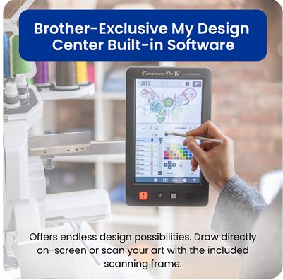 - My Design Center The Brother exclusive My Design Center offers built-in design capabilities, all without a PC. Enjoy features like custom draw, inside and outside auto stippling, and fill patterns.
