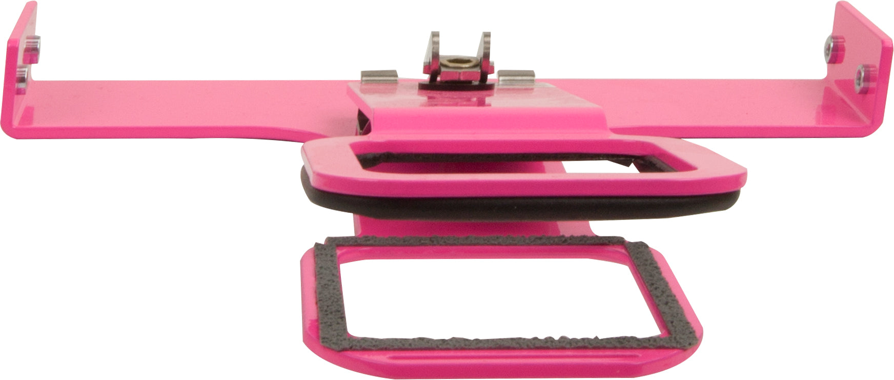 Machine specific adaptors bolt to the clamp body and are used to attach and adjust the clamp to fit your embroidery machine. There is a small slit in the bottom window. This allows for a place for backing to be held securely during the initial frame up and through out the sewing process. This easy to use clamp is a life saver for many of those hard to hoop items that have a lot of stretch. The heavy duty cam lever closes the clamp down extra tight for a tight hold.