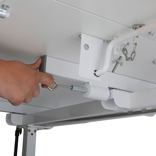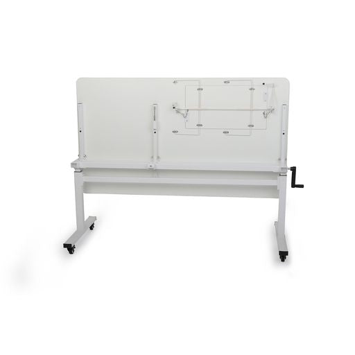 - Transition from sitting to standing with the turn of a crank, moving table from 28-1/2” to 38” tall