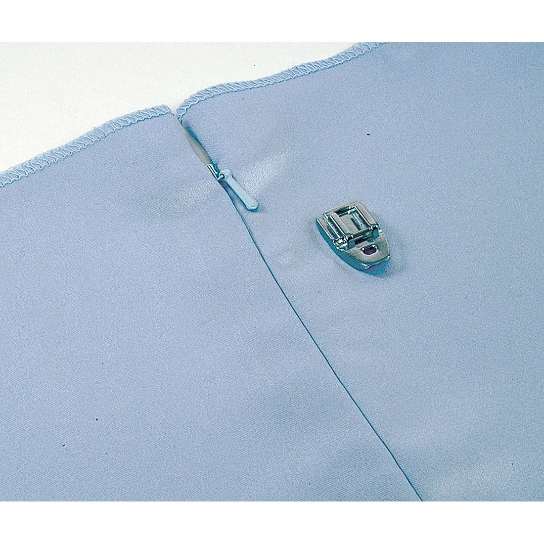 For invisible zippers with a professional appearance, this is the right foot to use. The zipper coils act as the guide for this foot, allowing for perfectly positioned stitches that won't show on the front of your garment.